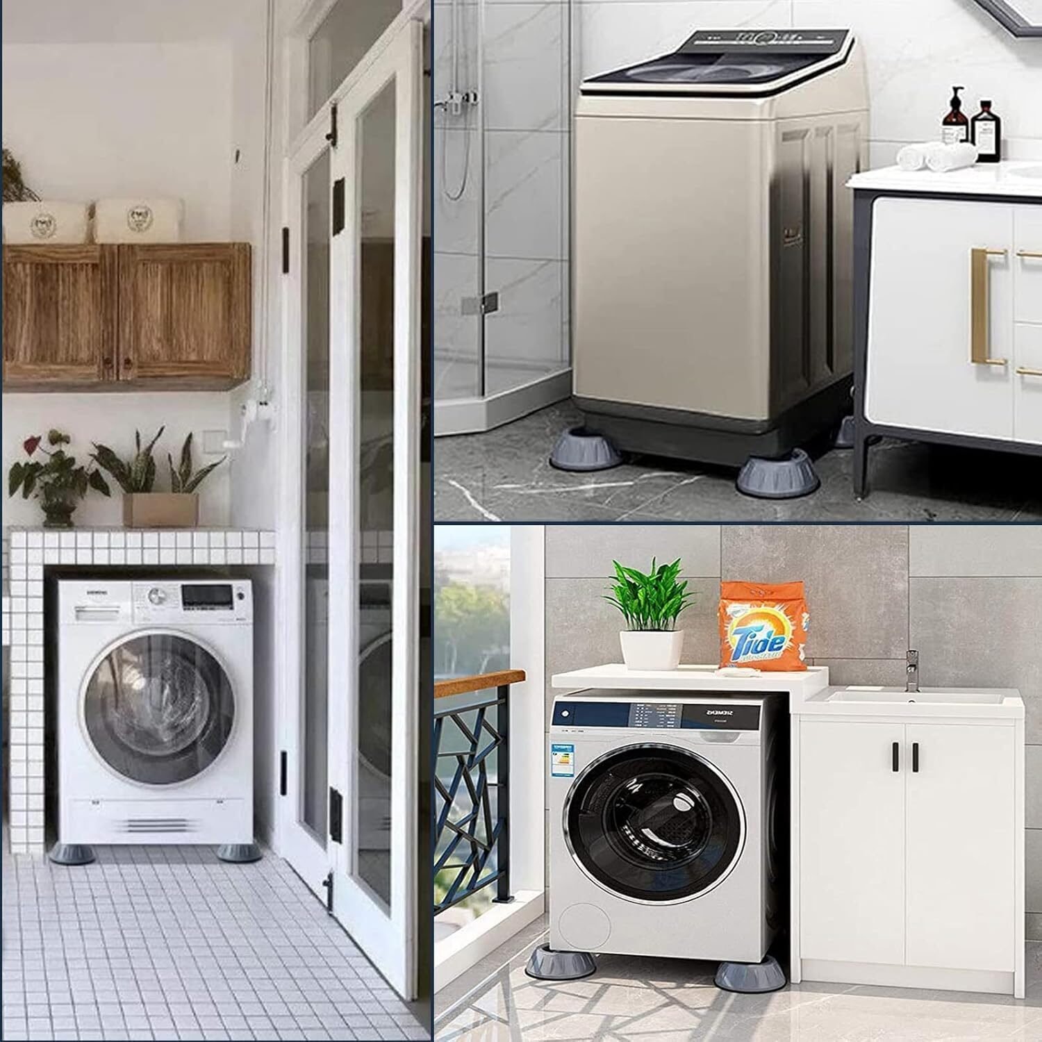 أهم ميزة هي الثبات. القواعد بتمنع الاهتزاز تماماً وقت التشغيل، وبتخلي الغسالة ثابتة في مكانها مهما كانت سرعة العصر عالية. وبالتالي، بتحافظي على “مساعدين” الغسالة من التلف وبطولي عمرها الافتراضي.