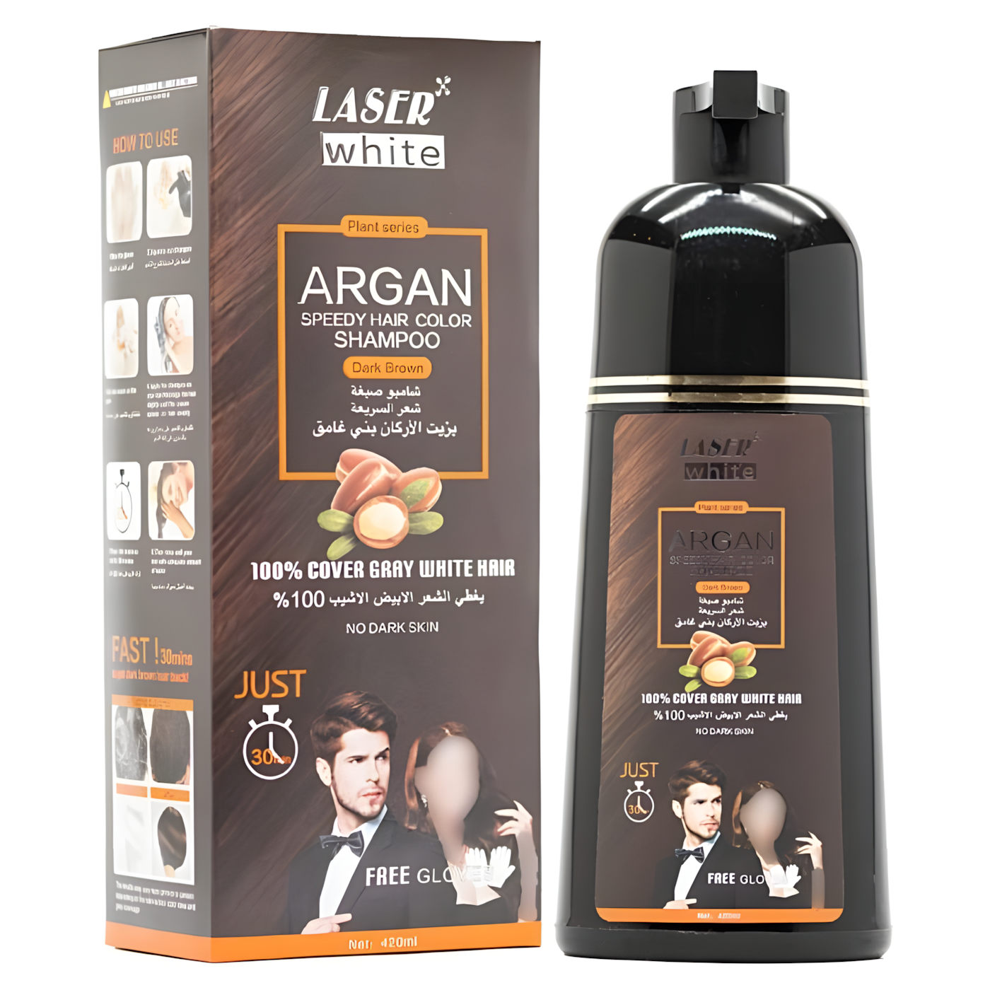 بالإضافة إلى ذلك، التركيبة الفريدة بزيت الأرجان، الصبار، والكيراتين تضمن لكِ ليس فقط تلوين الشعر، بل ترميمه من الجذور حتى الأطراف. لذلك، هذا العرض مثالي للاستخدام العائلي (للرجال والنساء) لصبغ شعر الرأس، اللحية، والشارب بأمان تام لأنه خالي من الأمونيا والبارابين.