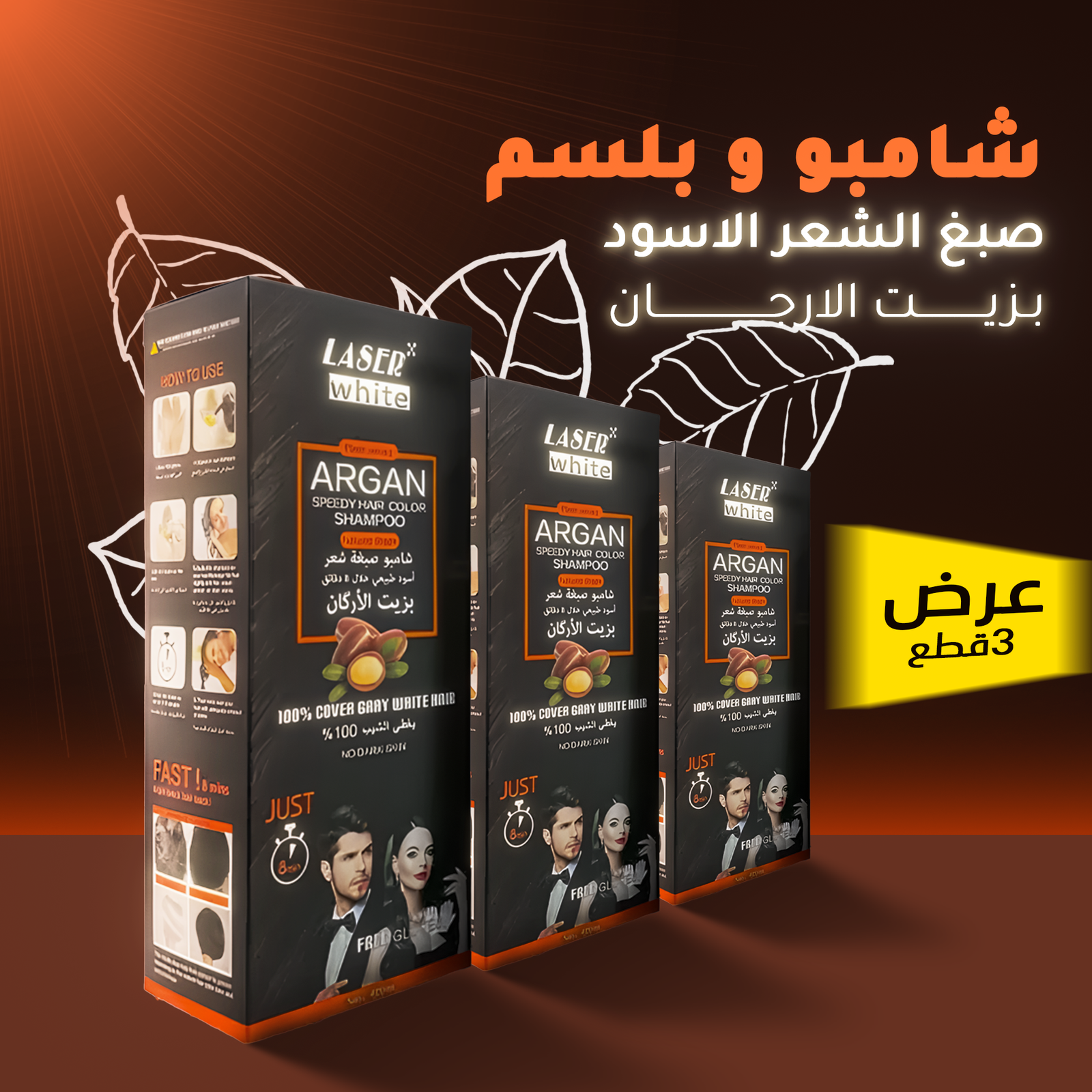 لماذا تشترين عبوة واحدة بينما يمكنك الحصول على كورس عناية متكامل بسعر توفير لا يقاوم؟ عرض 3 قطع شامبو صبغة شعر بزيت الارجان هو فرصتك الذهبية لتوديع الشعر الأبيض لفترة طويلة جداً، أو مشاركة سر الشباب الدائم مع زوجك أو أفراد عائلتك. احصلي على 3 عبوات كبيرة من الحل السحري الذي يصبغ، يغذي، وينعم الشعر في آن واحد.