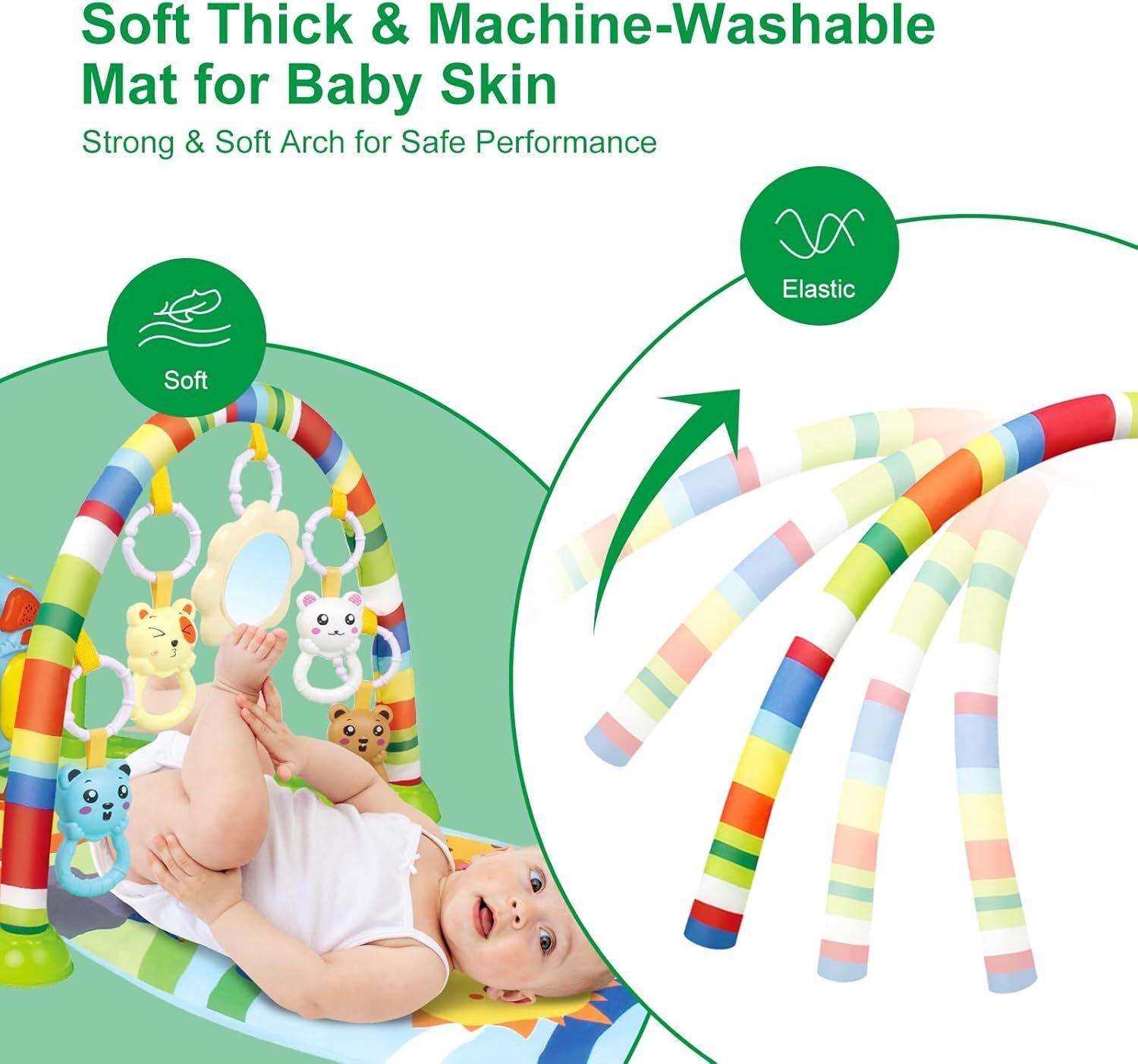 لو بتدوري على أداة تخلي وقت البيبي كله متعة وتعلم، من أول يوم لحد ما يبدأ يتحرك لوحده، أكيد السجادة الذكية دي هي اللي هتوفرلك كل حاجة. علشان كده، بتتميز سجادة الألعاب للأطفال بالبيانو بأنها بتشغل الحواس الخمسة للرضيع، وبالتالي هتساعده يكتشف الدنيا ويطوّر مهاراته من غير ما تحسي!