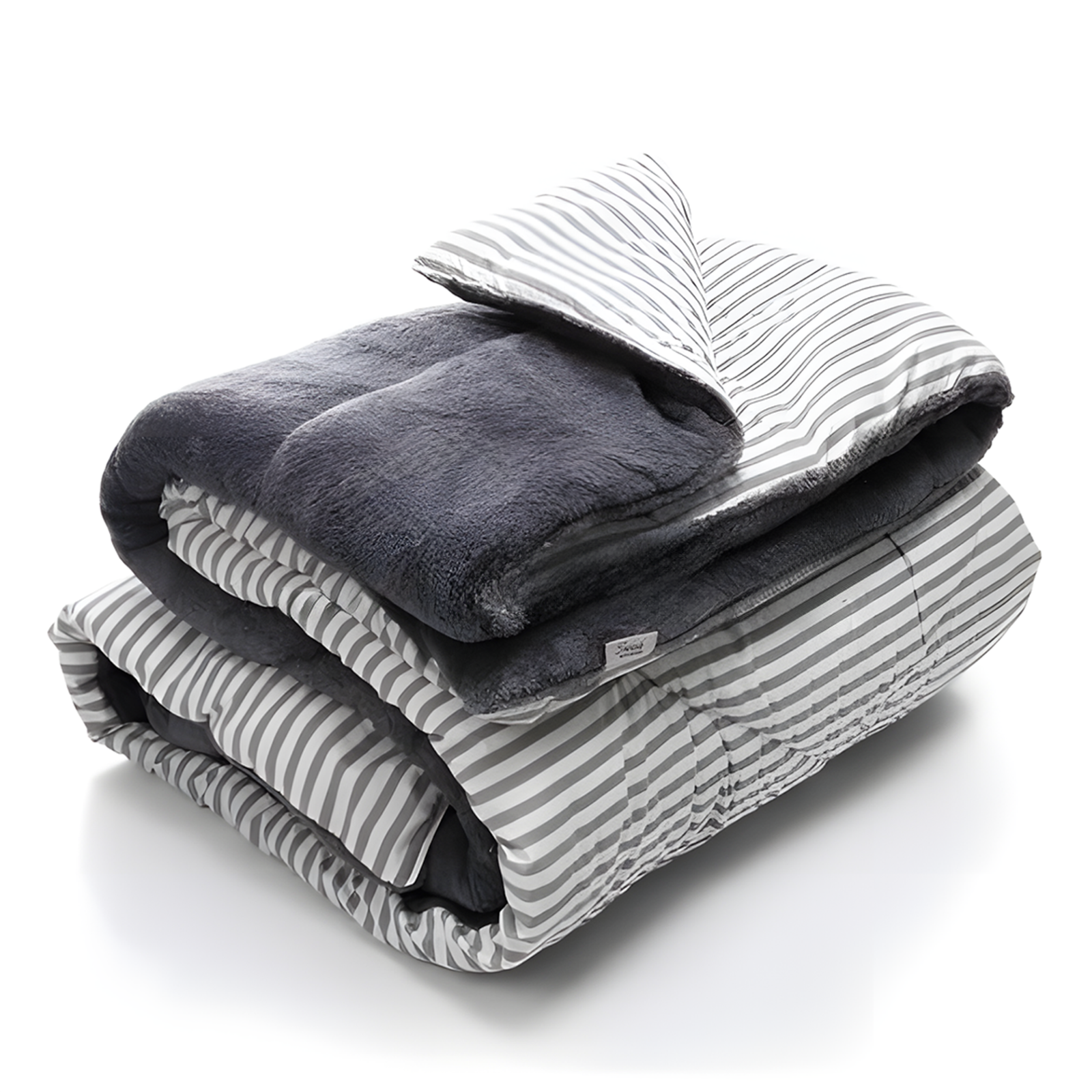 • لحاف شتوي فرو دبل فيس Gray Striped 220*235cm -