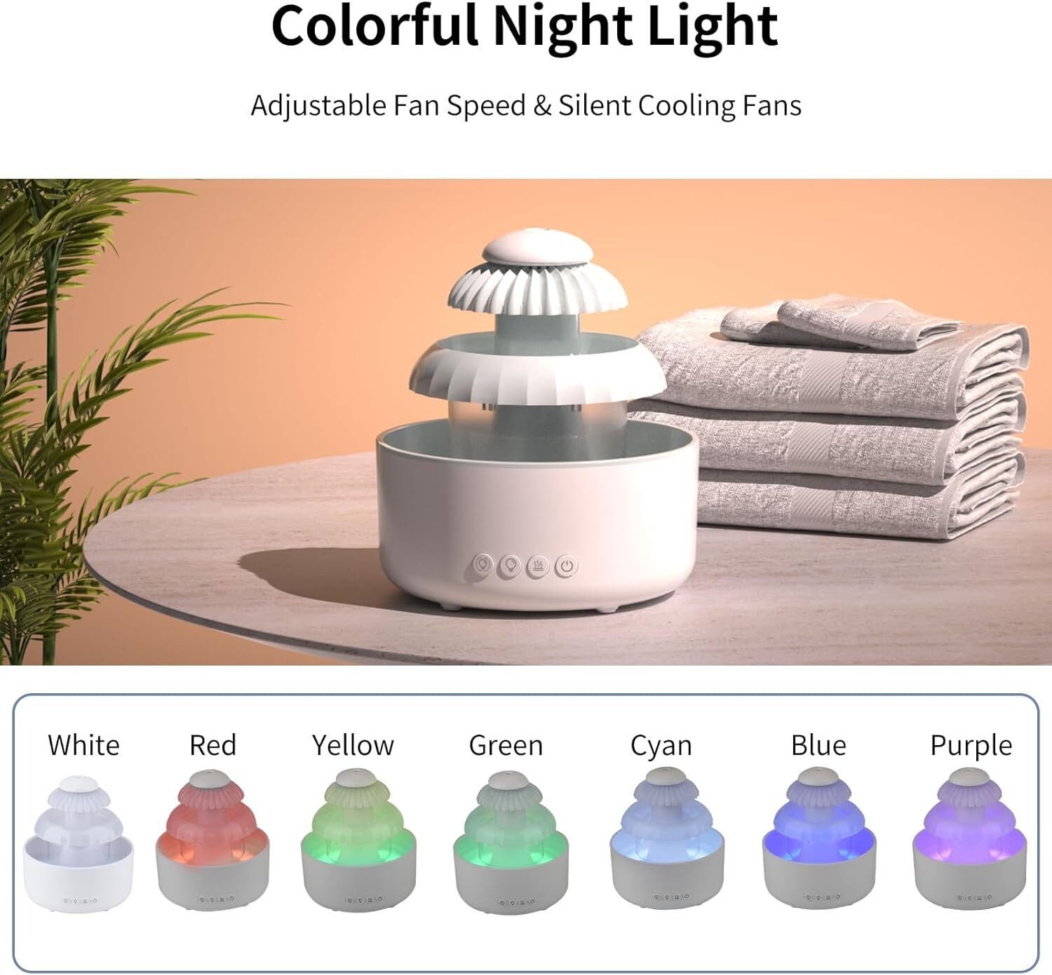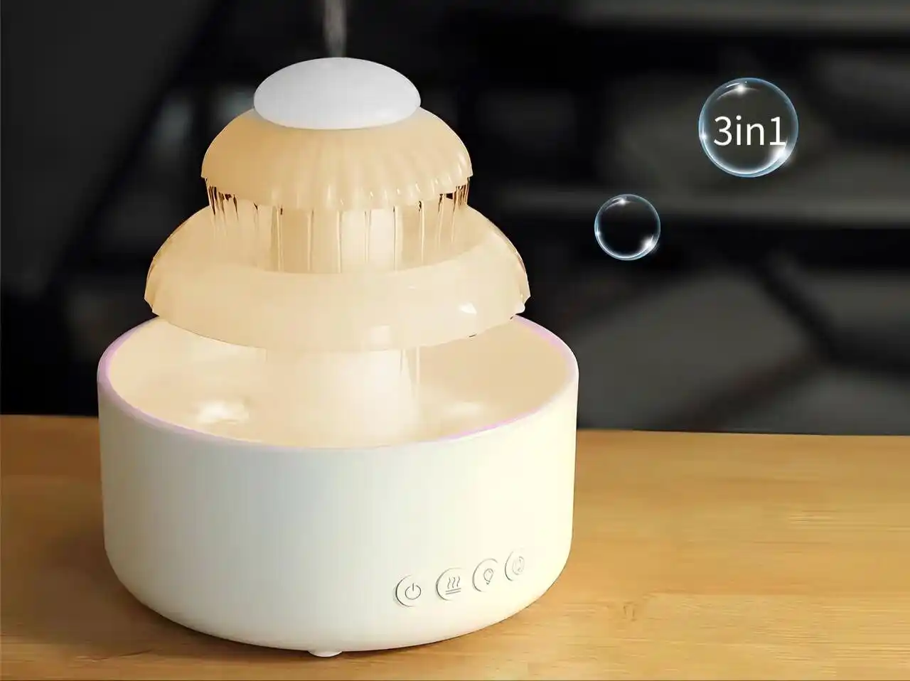 فواحة سحابية مائية بيضاء، بتطلع صوت مطر وبتنزل قطرات مية، مع إضاءة ليلية 7 ألوان.الفواحة المائية : عيش جوّ المطر سحابة بتنزّل مطر ورائحة تهدّي الأعصاب!