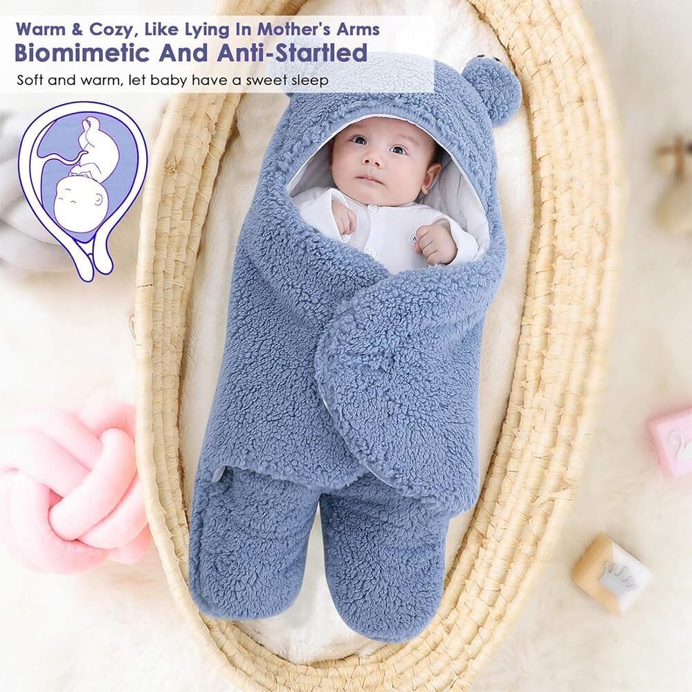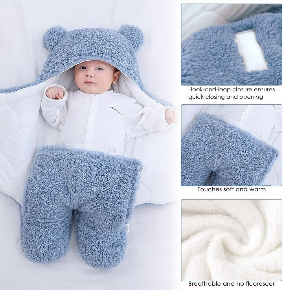 علاوة على ذلك، غطاء رأس (كابيشو) لطيف بتصميم دب يحمي أذني الطفل ورأسه من تيارات الهواء البارد، مما يوفر له الدفء التام أثناء النوم.