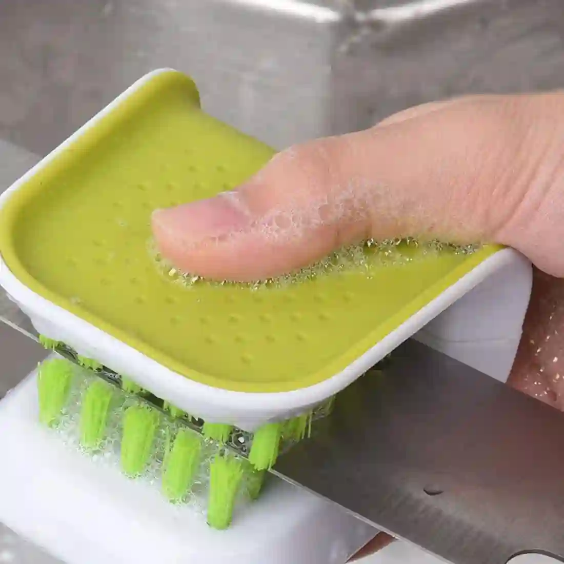 الهدف الأول لهذا الابتكار هو الأمان. في البداية، يتيح لكِ التصميم الملتف (على شكل حرف U) تنظيف جانبي السكين في وقت واحد دون أن تلامس يدكِ الشفرة الحادة نهائياً، مما يؤدي إلى حماية أصابعك من الجروح العميقة التي تسببها الإسفنجات التقليدية. وفي هذا السياق، يعد الحفاظ على نظافة وبريق أدوات المائدة (Cutlery) أمراً ضرورياً لصحة العائلة ومظهر السفرة.