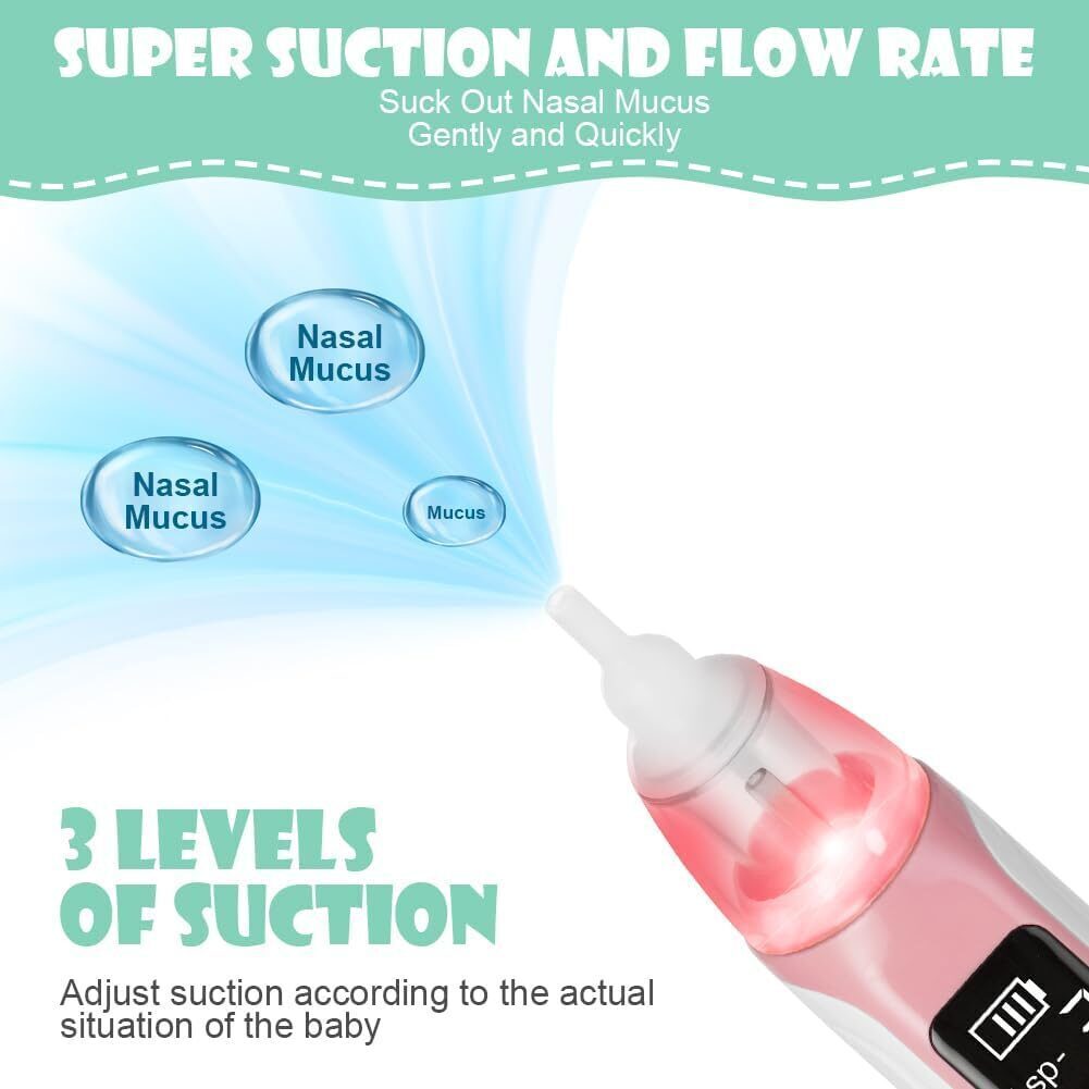 بالإضافة إلى ذلك، يعمل هذا الشفاط بقدرة شفط لطيفة مناسبة للرضّع، مما يجعله خيارًا عمليًا للاستخدام اليومي، خصوصًا في حالات انسداد الأنف البسيط.