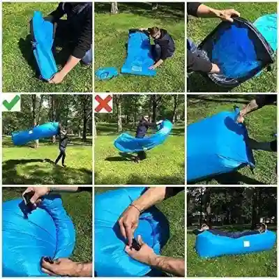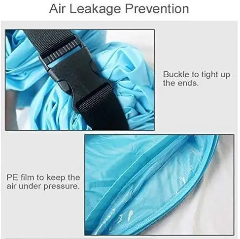 أهم ميزة هي إنه بينفخ بسرعة وبدون مضخة، حيث كل اللي عليك تعمله هو تفتحه، تاخده مع اتجاه الريح، تلفّه، وتسكر السحاب – خلاص جاهز!