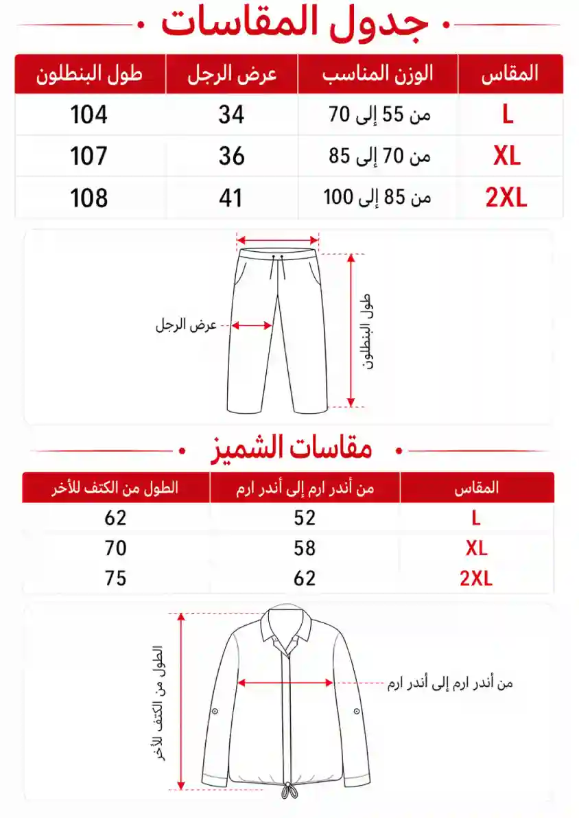 ختاماً، نوفر لك مقاسات مضبوطة لتناسب جميع الأجسام براحة تامة. لذلك، اختر مقاسك المعتاد بكل ثقة. في الوقت نفسه، نحن نحترم سياسة الخصوصية الخاصة بك. بالإضافة إلى ذلك، نوفر ميزة المعاينة الكاملة قبل الدفع والاستلام لضمان الجودة. مع ذلك، نرجو ملاحظة أنه لا يتوفر استبدال أو استرجاع بعد استلام الطلب. لذلك، يرجى مراجعة صفحة الشحن والتوصيل لمعرفة كافة التفاصيل بدقة. في النهاية، اطلب منتجك المفضل الآن.
