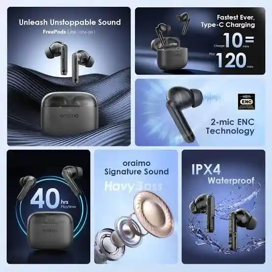 لو بتدور على سماعة تدّيك صوت محترف وبيس قوي، مع بطارية مش هتخلص أبداً، أكيد سماعات اورايمو FreePods Lite هي الاختيار اللي هيغير تجربتك. علشان كده، بتتميز سماعات اورايمو لاسلكية ENC بأداء جبار في الجيم والمكالمات، وبالتالي هتستمتع بيومك كله من غير أي انقطاع.