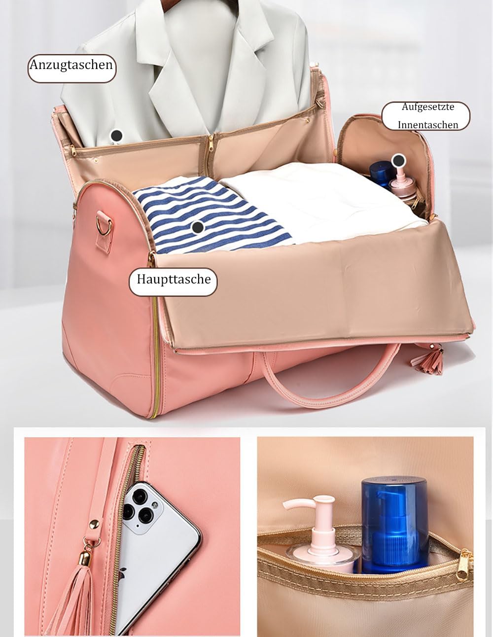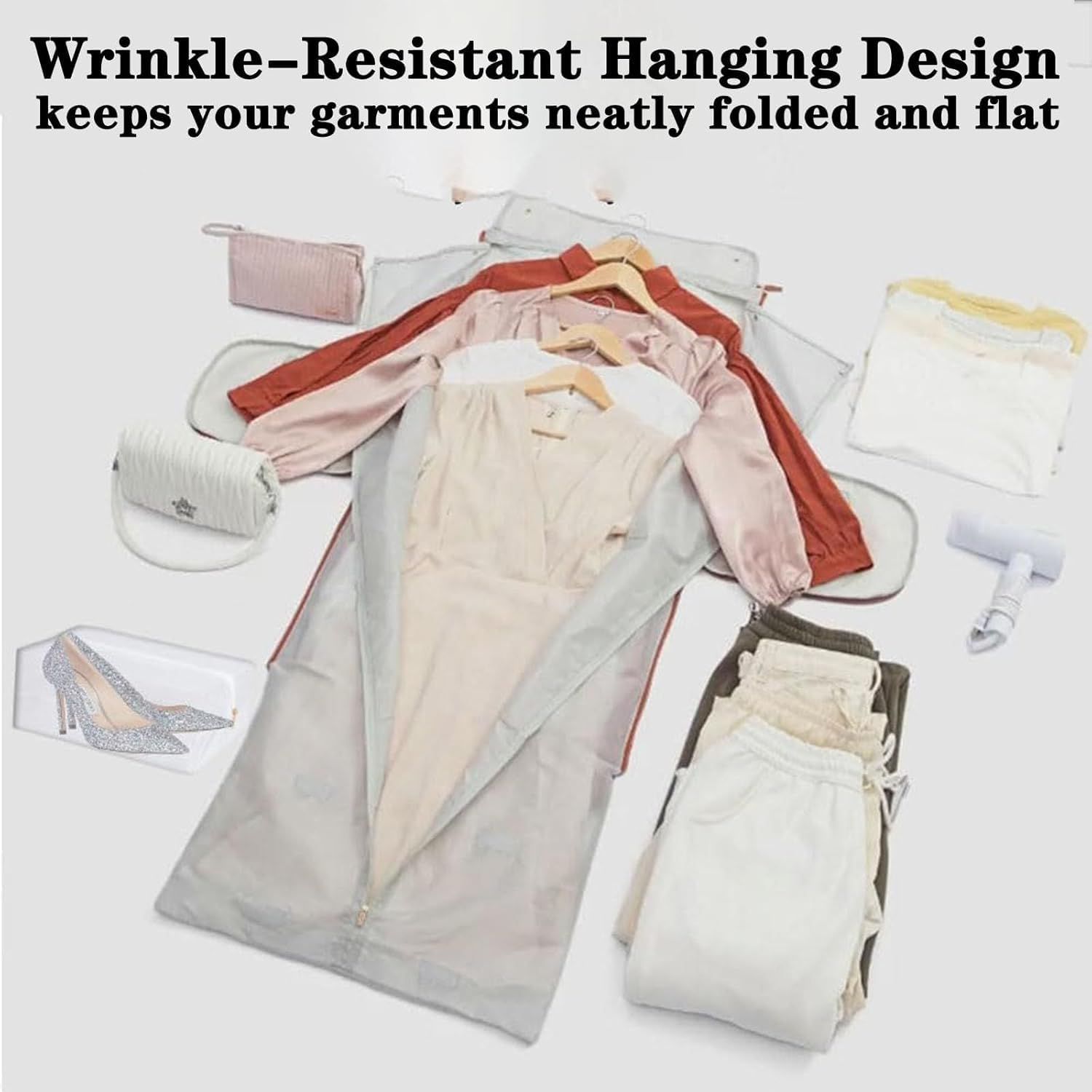 بمجرد ما تفرديها، تتحول لشنطة تعليق تحافظ على شكل الملابس من التجاعيد – مثالية للبدل والفساتين. -